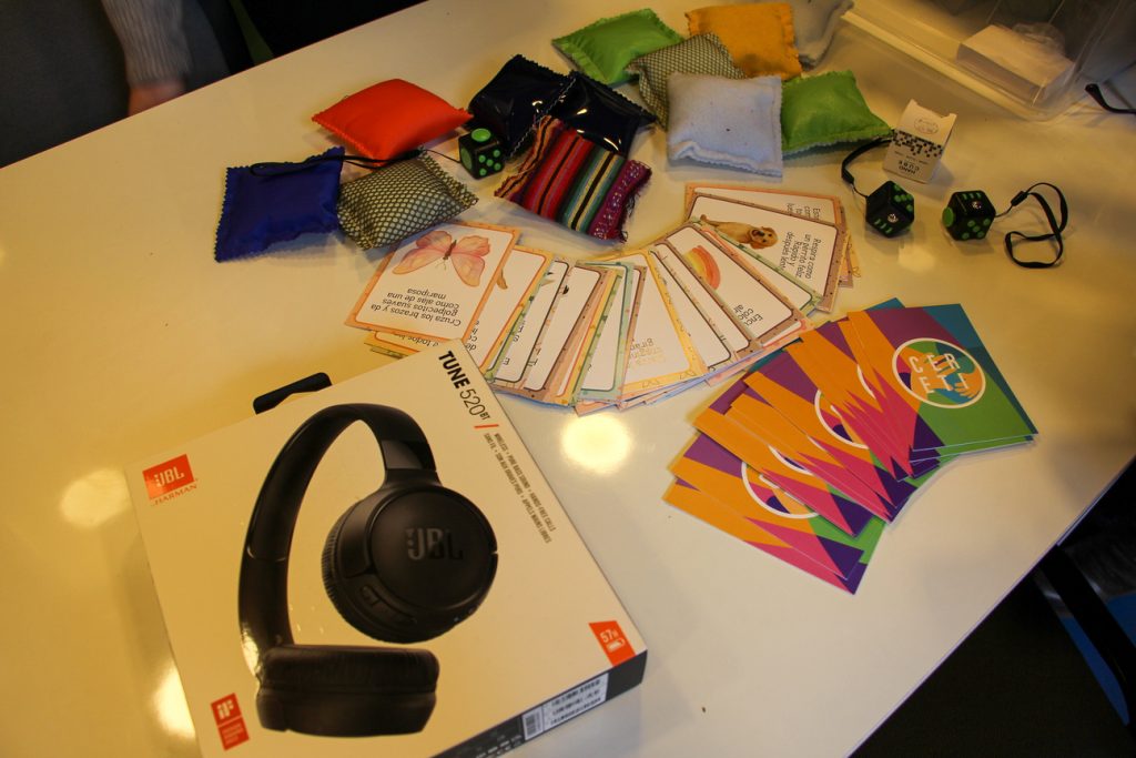 Estos materiales —entre los que se incluyen elementos sensoriales, fidget toys y tarjetas con estrategias de autorregulación— buscan contribuir al bienestar y la autorregulación emocional del estudiantado, especialmente autista, en contextos grupales o de acompañamiento académico.